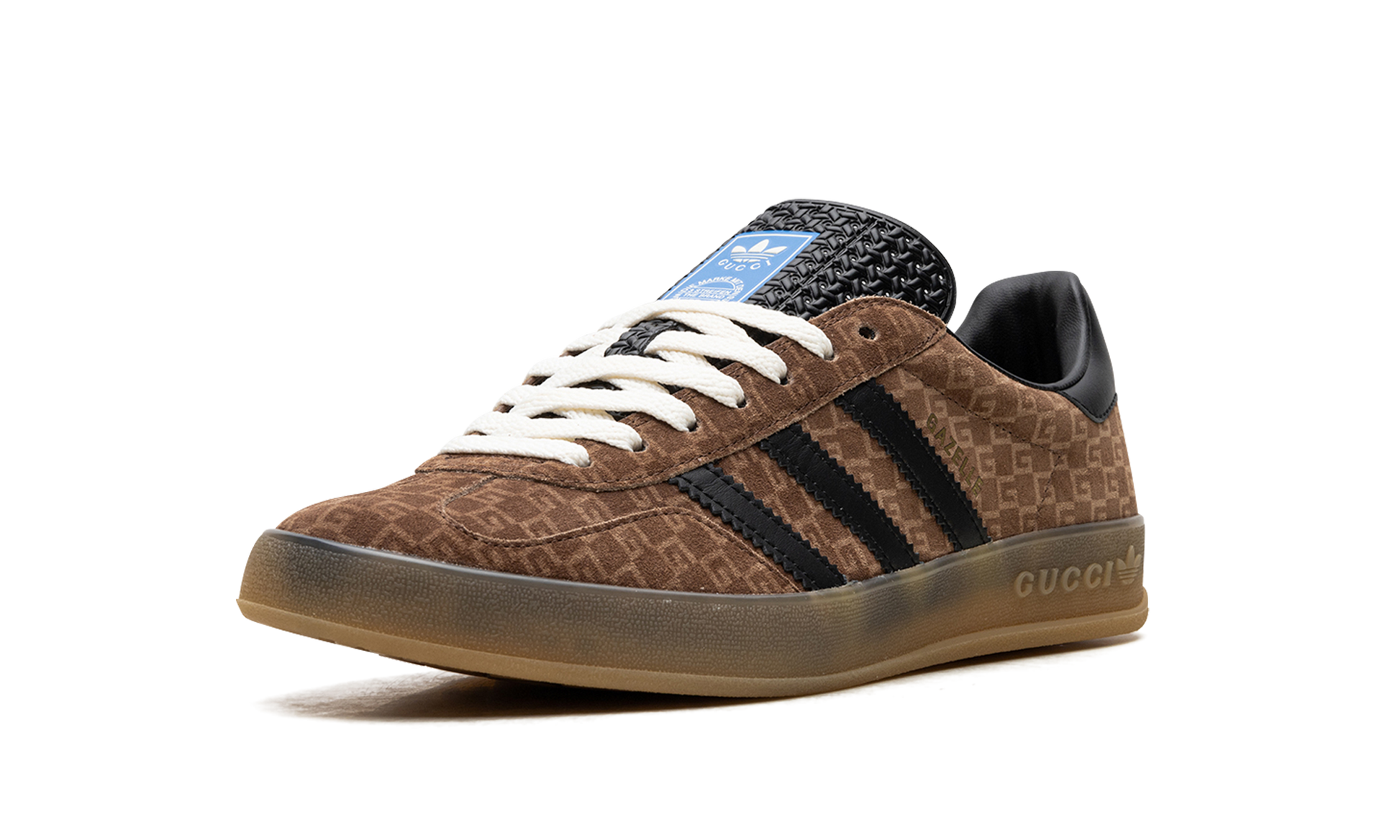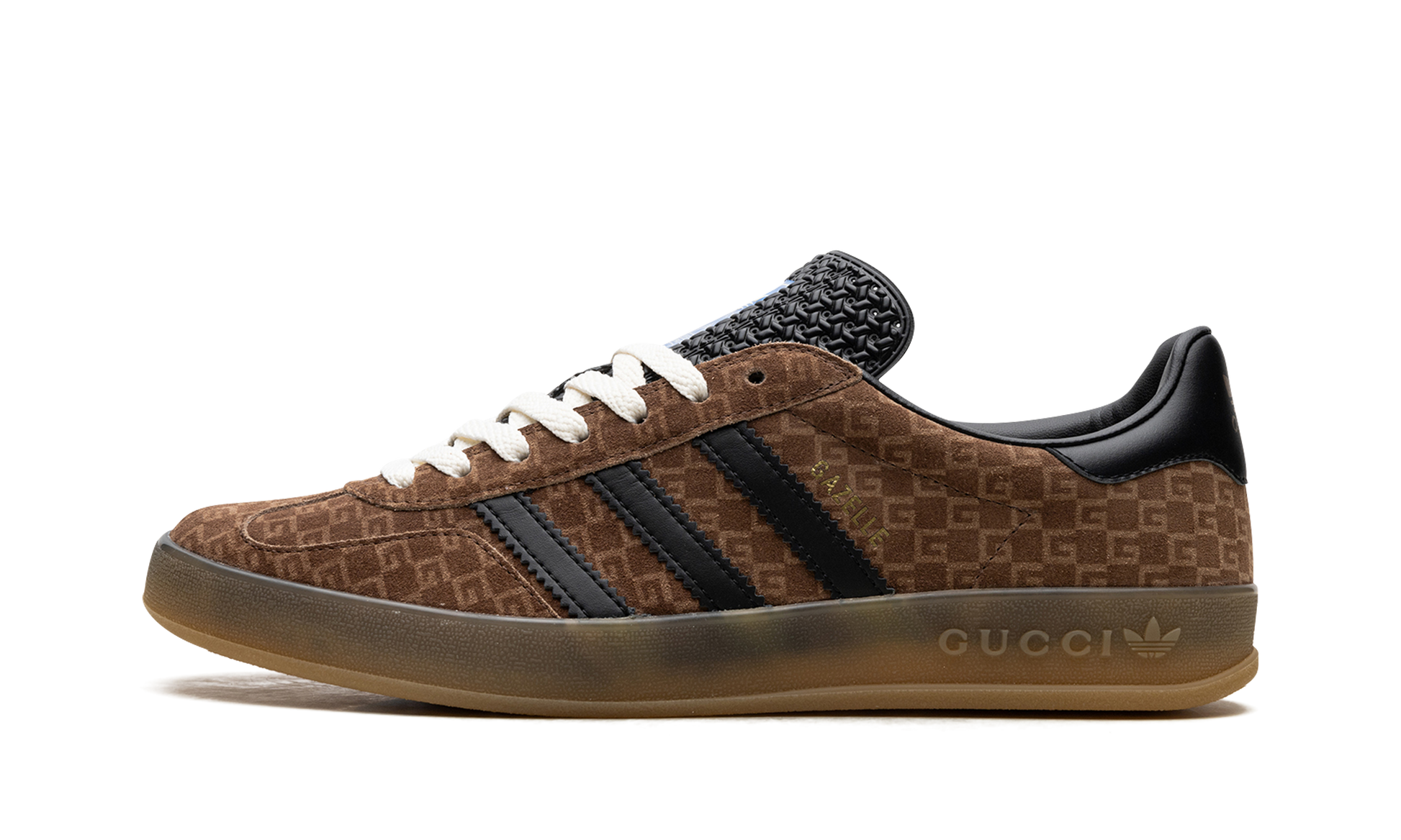 The Gucci x adidas Gazelle “Brown” is a limited edition collaboration by the storied high fashion brand and adidas that puts Gucci’s iconic monogram print on the popular sneaker. Part of the second collaboration between Gucci and adidas, the Gazelle in “Brown” features Gucci’s famous “GG” monogram patterning in an all-over style on the shoe’s canvas upper. The look is said to be inspired by 1980s-era sportswear aesthetics. Black leather Three Stripes branding can be found on either side of the shoe while gold co-branding appears on the black leather heel tab. More co-branding is located on the tongue. “GG” embossed branding is found along the gum rubber midsole. Release date: March 31, 2023 GG Monogram - Brown
