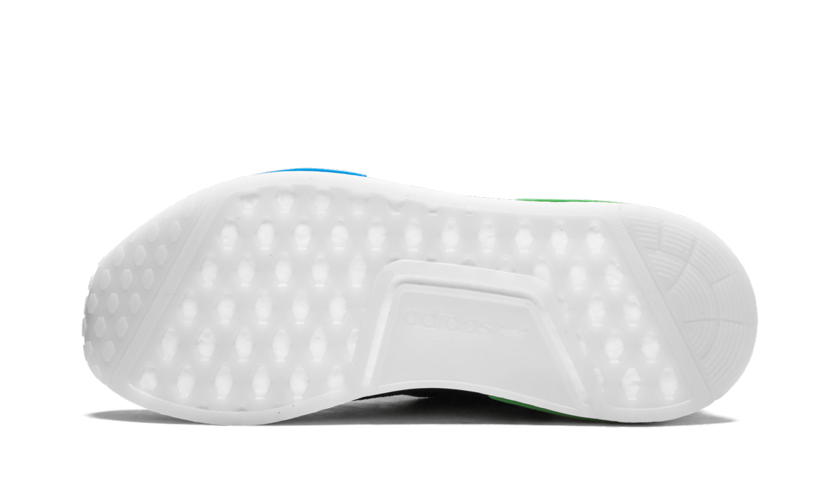 Japan’s Mita Sneakers and adidas Consortium produced another outstanding collaboration with this NMD TS1 in 2018. The stylish Mita x adidas Consortium NMD TS1 features a mesh upper with a unique shroud and bungee cord lacing system. The sneaker's predominantly black upper has green and blue accents on the NMD’s signature midsole inserts as well as on the “tape” fused onto the upper. Mita’s signature chain-link fence design from their retail location is also referenced on the tonal overlay covering the upper of the NMD TS1. The final touch for the Mita Sneakers x adidas Consortium NMD TS1 is the translucent white outsole which completes the distinct look. Mita