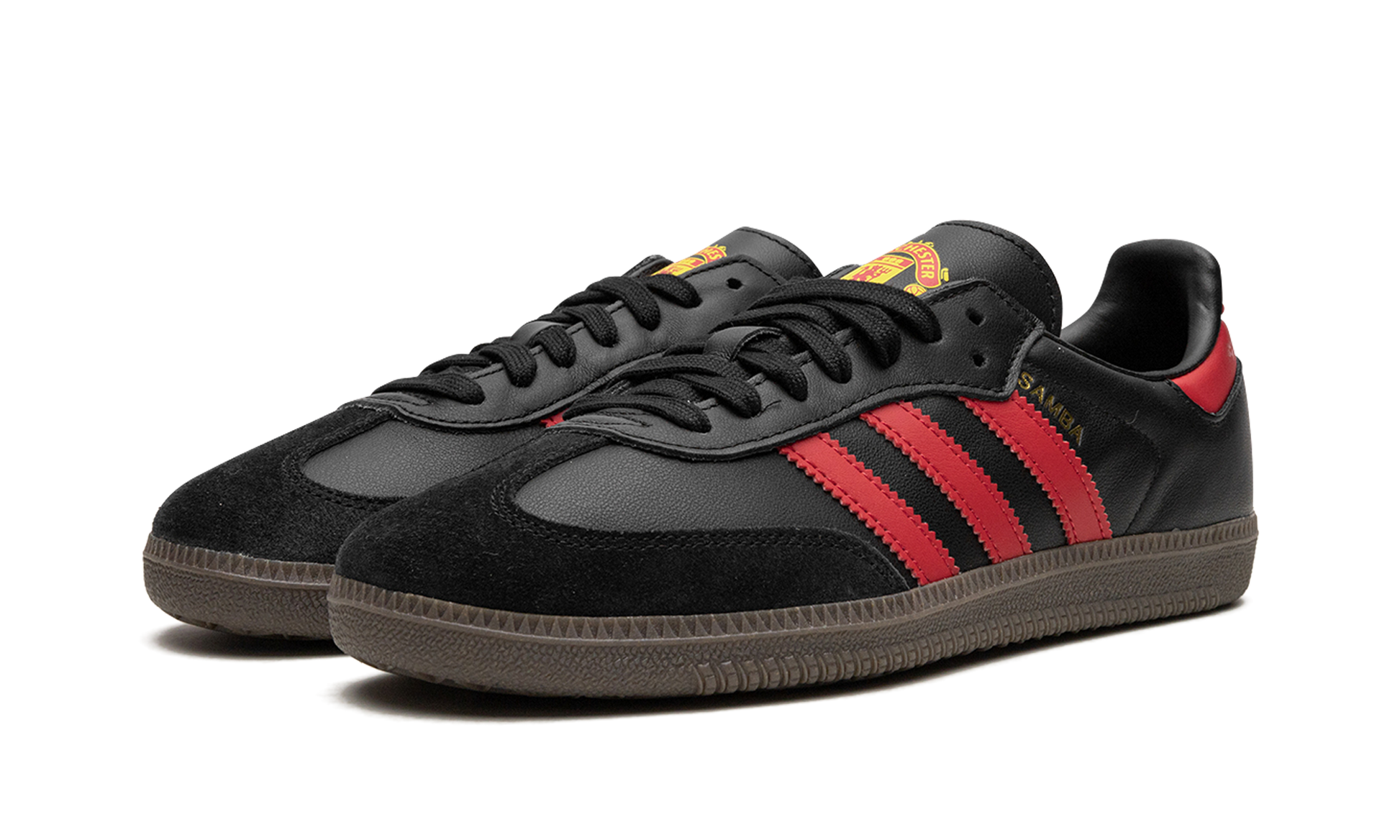 The adidas Samba “Manchester United” is a special colorway of the iconic sneaker for fans of the storied soccer club. Manchester United’s colors and branding found on its kits are applied to the adidas Samba to great success. The shoe is complete with a black leather base with red leather Three Stripes detailing on the sides. Additional red leather can be found on the heel. A “Manchester United” graphic is located on the tongue. A dark gum rubber sole completes the look. Manchester United