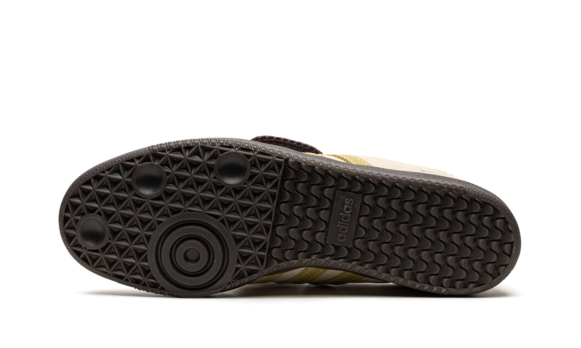 The Wales Bonner x adidas Samba “Cream/Yellow” is a collaboration between the fashion designer and adidas on the popular sneaker that shows appreciation for the model’s soccer heritage. One of several colorways of the adidas Samba by Grace Wales Bonner, this edition features a light brown leather construction with tonal suede on the toe. A mustard-like shade of yellow appears on the leather Three Stripes on the sides and a “Wales Bonner” logo is found on the lateral side of the heel. The shoe’s fold-over tongue is an acknowledgment to the Samba’s original appearance. A dark gum rubber sole completes the look. Wales Bonner - Cream / Yellow