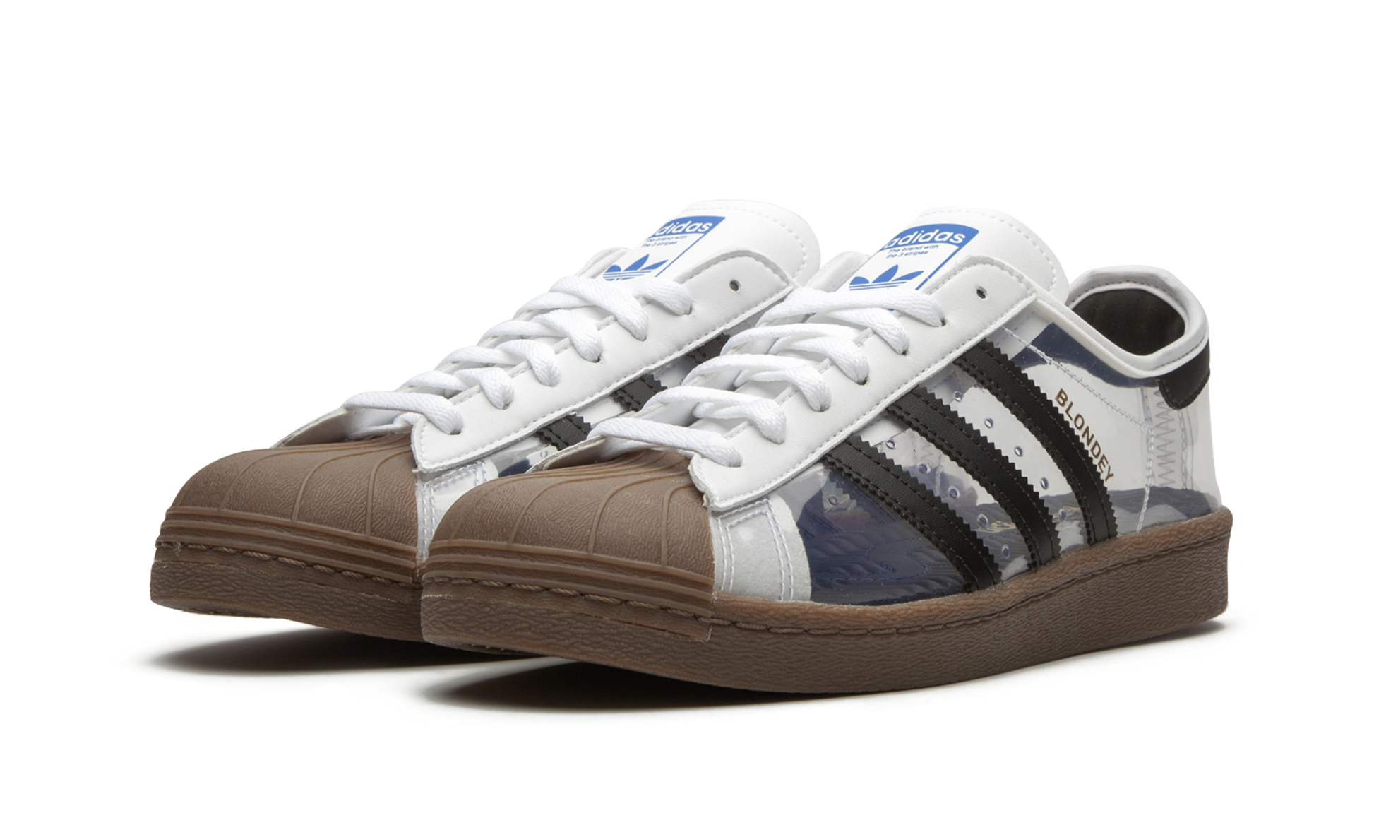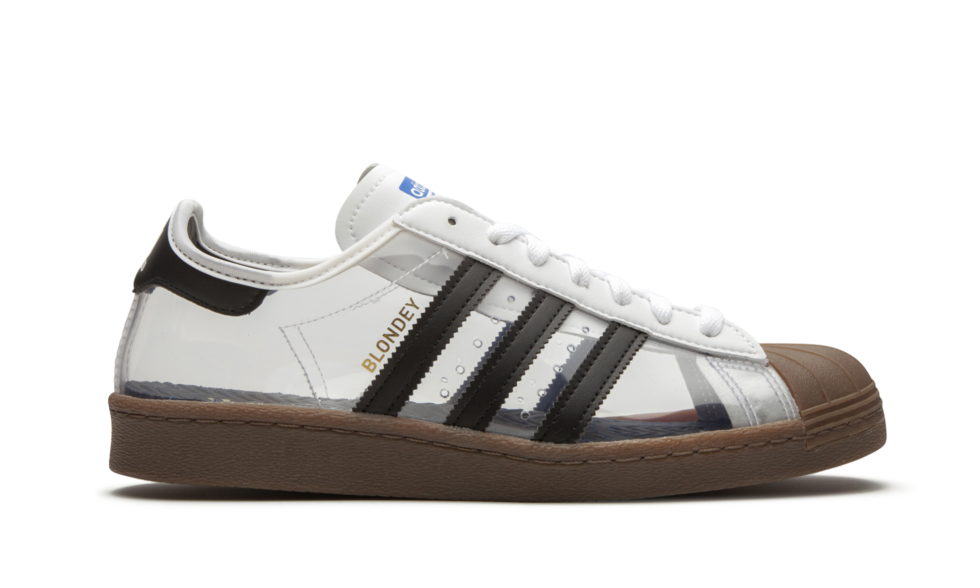 The Superstar 80 'Blondey McCoy' shoe is a collaboration with Blondey McCoy, featuring a unique design that blends classic Adidas Superstar style with his distinctive aesthetic. Blondey McCoy